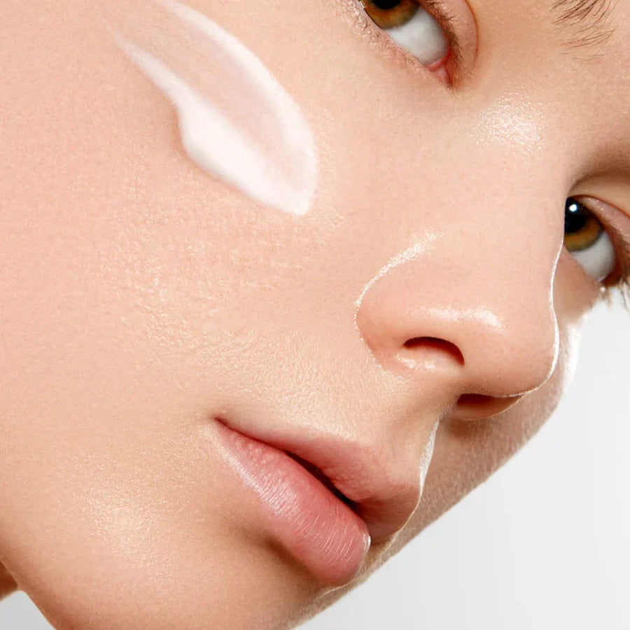 Espalhe uniformemente no rosto e pescoço
