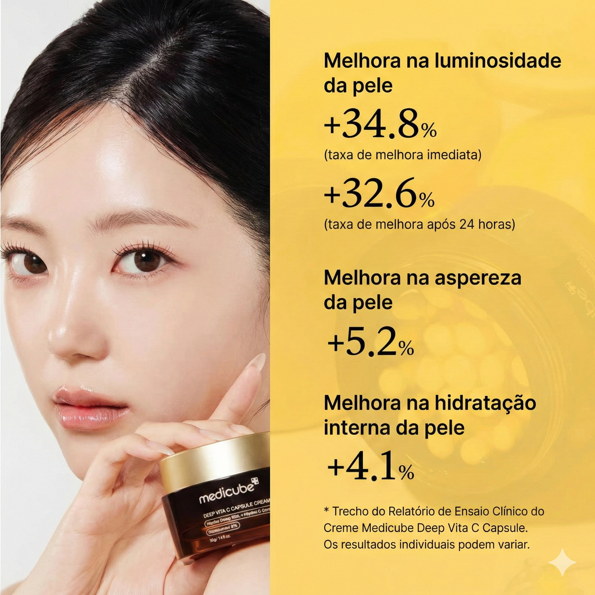 - Liberação fresca dos ativos As cápsulas se rompem durante a aplicação, entregando vitamina C estável diretamente na pele.